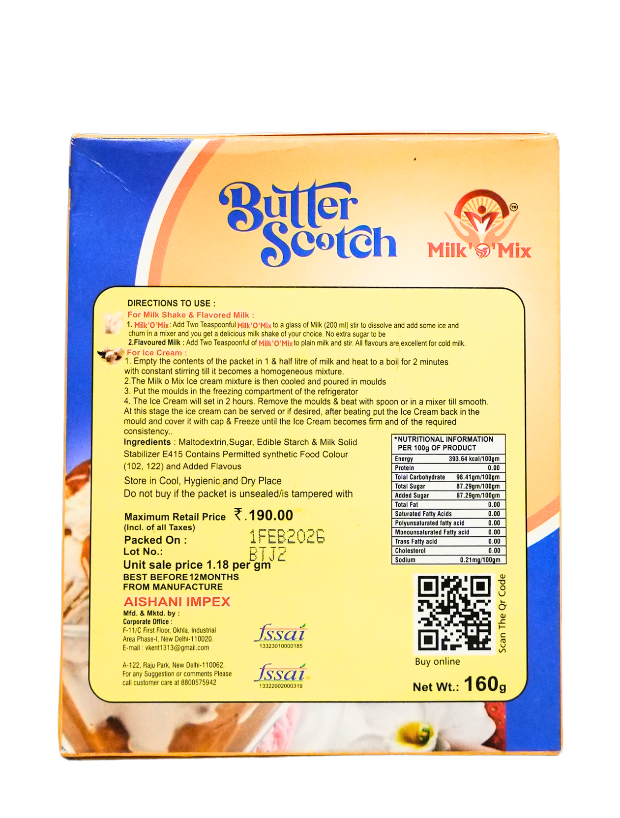 - Milk Shake: Add two teaspoon full Milk‘O’Mix into a glass of milk (200ml), stir to dissolve and some ice and churn in a mixer and you get a delicious milkshake of your choice. No extra sugar to be added.