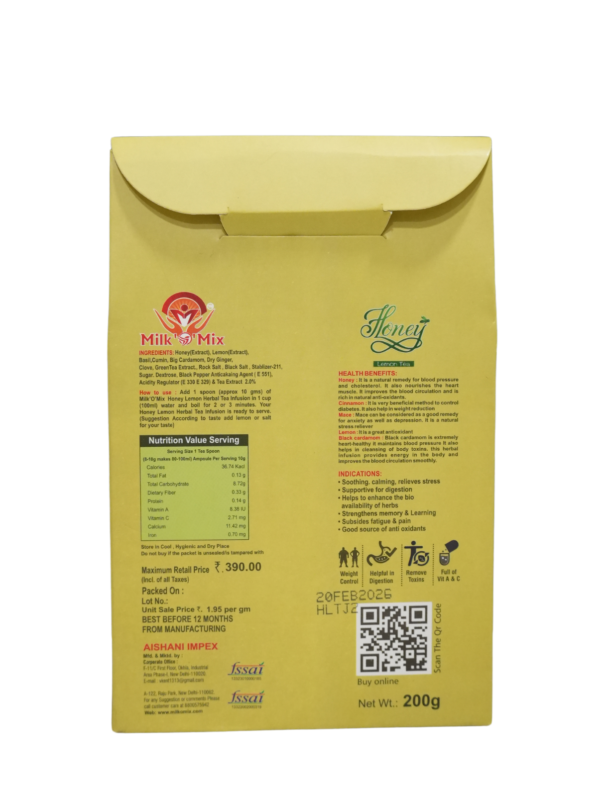 Add 1 spoon (approx. 10 gm) of Milk‘O’Mix Honey Lemon Tea to 1 cup (100 ml) of water and boil for 2–3 minutes. Your Honey Lemon Tea is ready to serve.