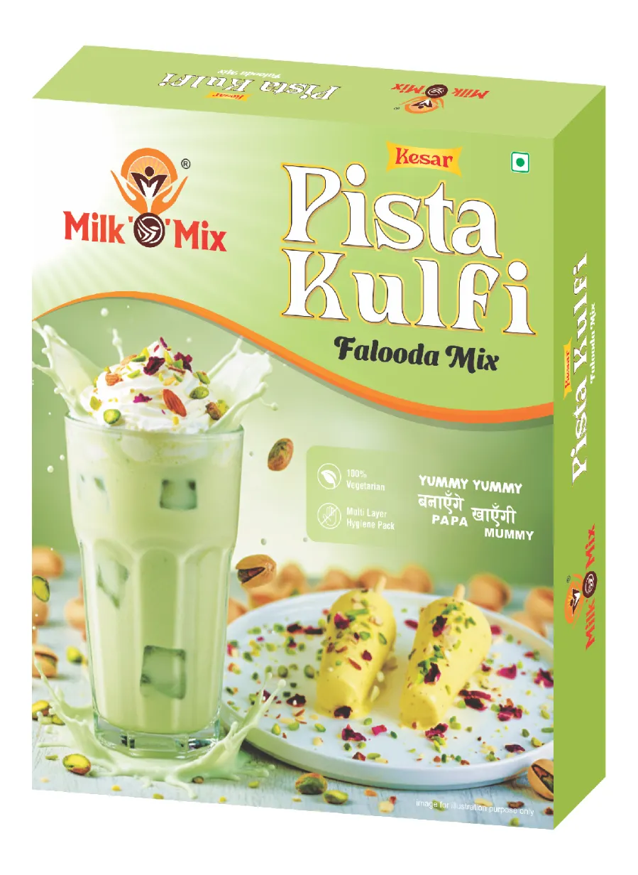 Add 1 litre Full Cream warm milk & 300ml water in a vessel and hat 5-6 minutes in a medium flame. Empty the Milk’O’Mix 200g Kesar Pista Kulfi Falooda Mix in the boiled milk.