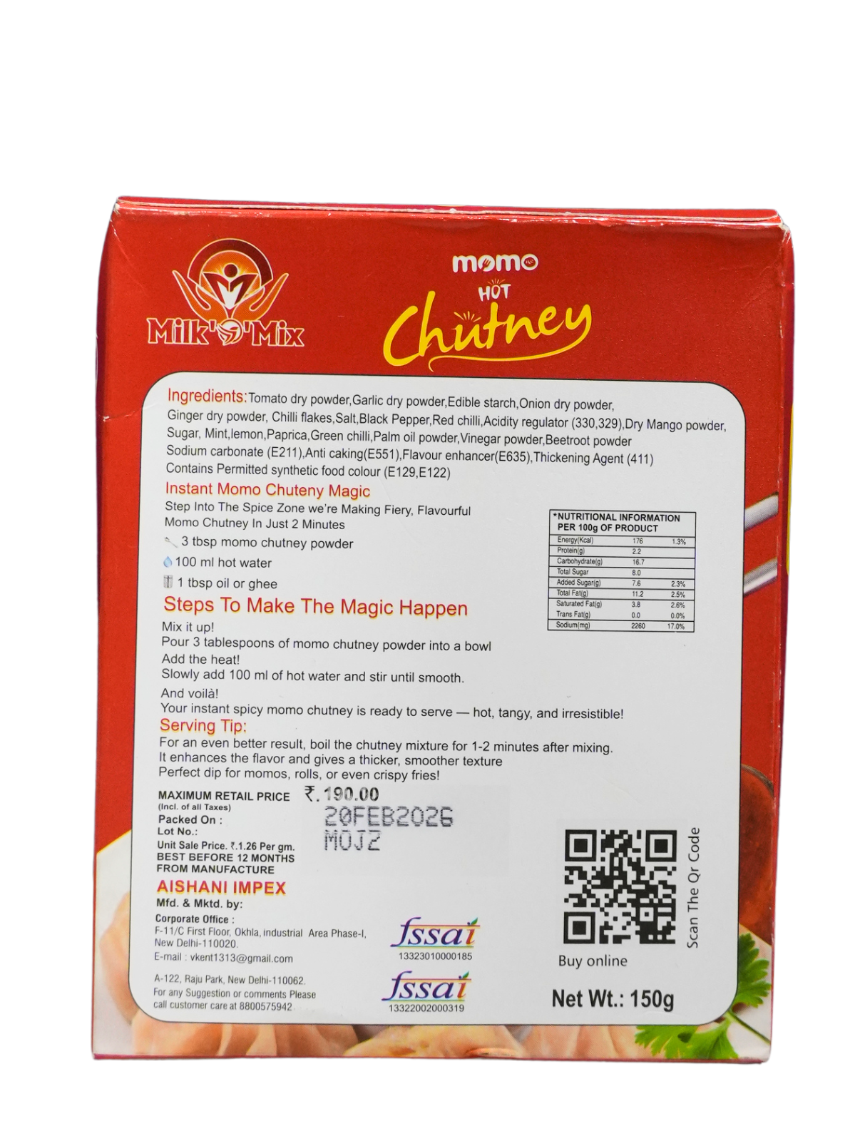 1) Add curd to 10g of Milk’O’Mix Mint Garlic chutney powder to make a thick paste.