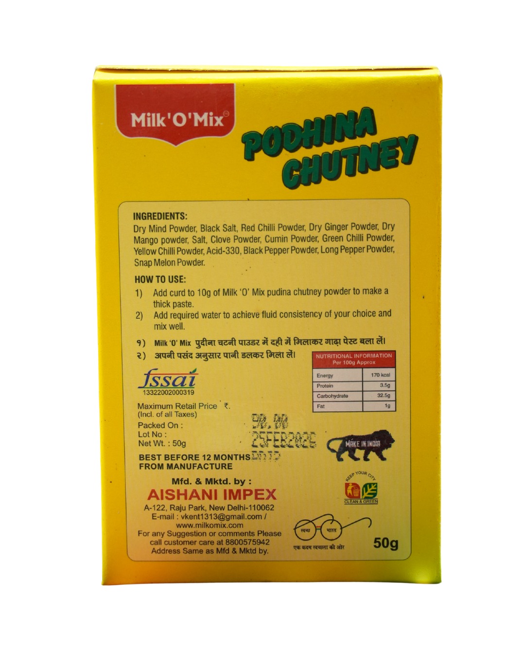 1) Add curd to 10g of Milk’O’Mix pudina chutney powder to make a thick paste.